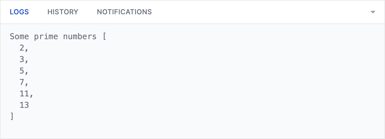 await ctx.log("Some prime numbers", [2, 3, 5, 7, 11, 13]);
